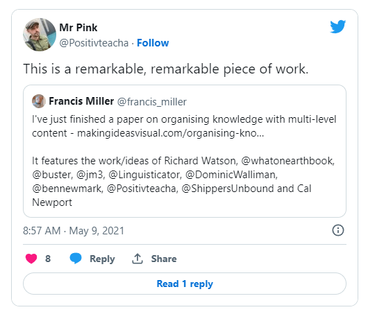 When I was planning my book Dual Coding With Teachers, Francis suggested I consider adopting an approach that structured the content in a way that allows for different reading routes through it.